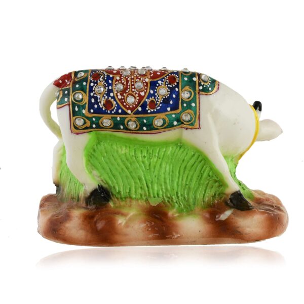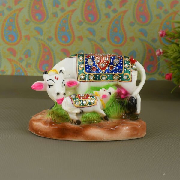 White Marble Kamdhenu Cow and Calf Statue (8.5 cm x 12 cm)